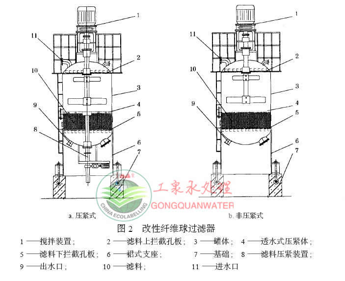 4、改性纖維球過濾器占地面積小:在相同的過濾器流量下,占地面積為傳統(tǒng)活性炭及石英砂過濾器的1/3以下。